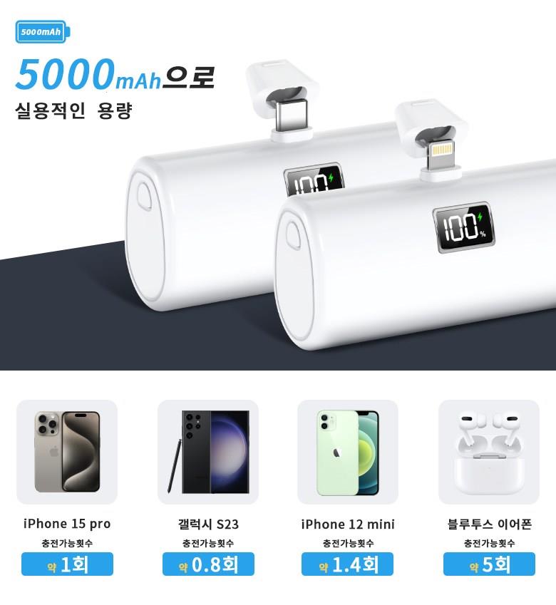 스마트폰 한 번, 두 번 충분히 충전할 수 있는 양이라 정말 편리하고, 급할 때 빠르게 충전할 수 있는 점이 아주 좋네요.