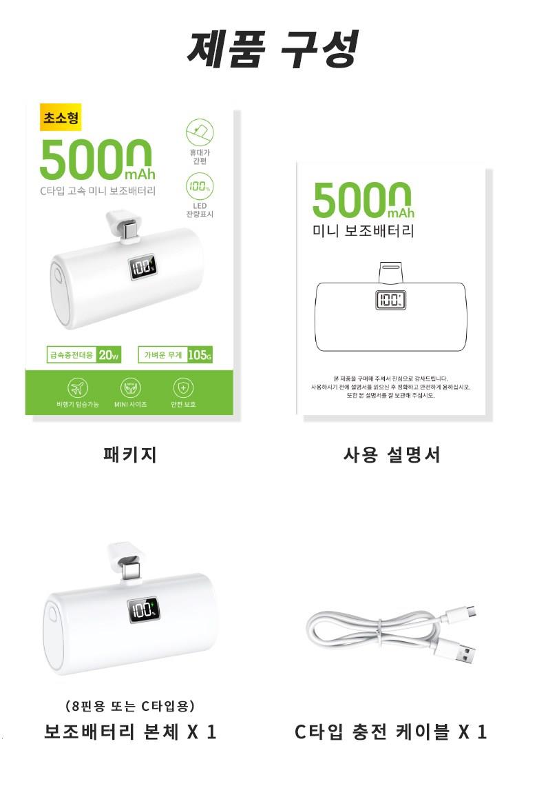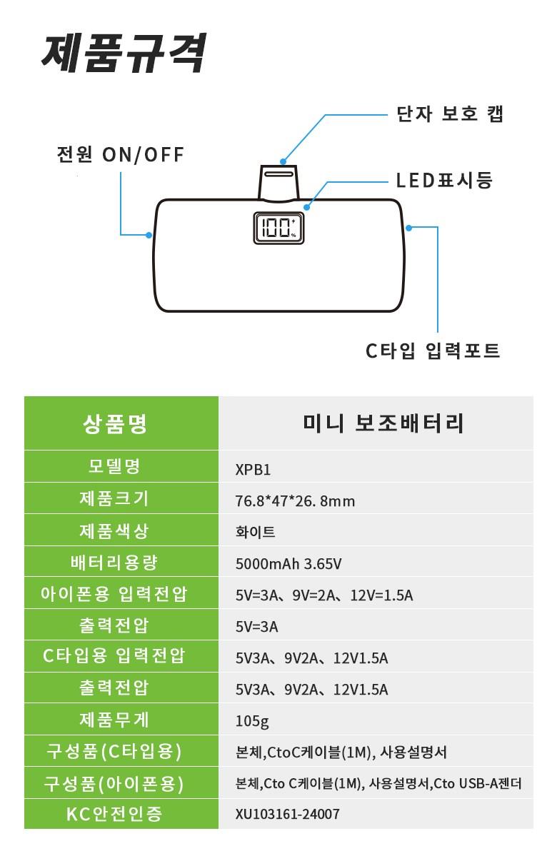YINTO 도킹형 보조배터리 고속충전 PD 20w 일체형 휴대용 미니 보조배터리 스펙