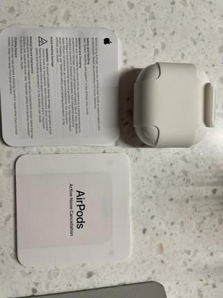 그리고 상자를 개봉해보면 통상적으로 우리가 구매한 에어팟이 들어있고 안에 설명서? 같은게 들어있습니다. 에어팟이 완전 충전된 상태는 아니어도 어느정도 배터리가 남아있는 상태로 와서 개봉하자마자 바로 연결해보았습니다. 특이한 점은 제 프로2세대에는 뒤에 동그란 버튼을 누르면 블루투스가 실행됐었는데 이제는 그런게 없이 에어팟 뚜껑을 열자마자 바로 연결이 되어서 솔직히 편했어요. 충전단자는 8핀이 아니고 C타입이니 참고해주세요.