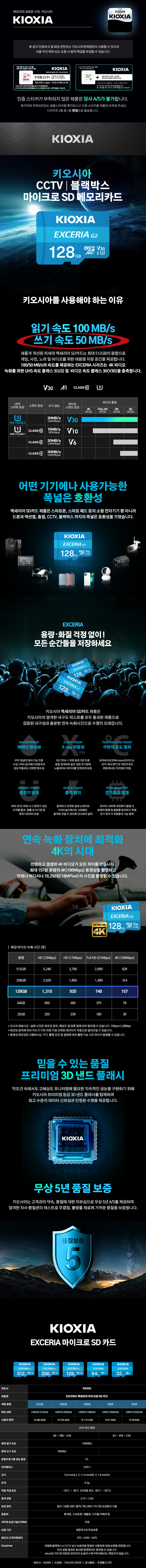 키오시아 EXCERIA 마이크로 메모리 카드 홈캠 블랙박스 CCTV SD LMEX2L128GG4 스펙