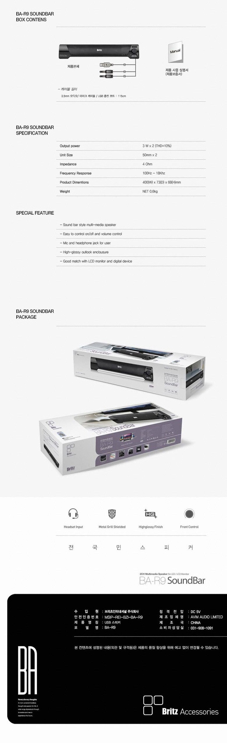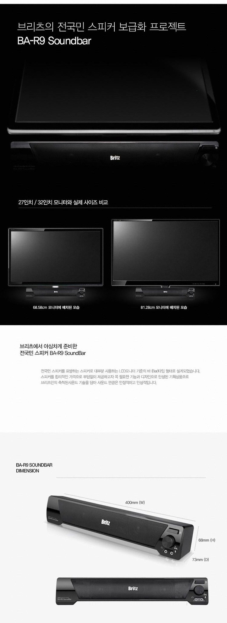 브리츠 BA-R9 USB 사운드바 스펙